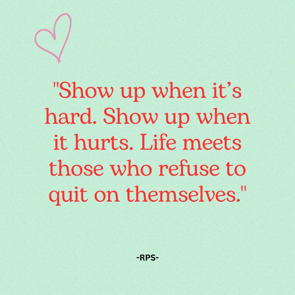 Show up when it’s hard. Show up when it hurts. Life meets those who refuse to quit on themselves.