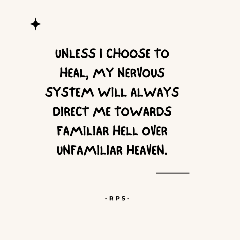 We don’t repeat patterns because they’re good for us — we repeat them because they’re familiar. Healing is the choice to tolerate the shakiness of new safety instead of returning to comfortable pain.