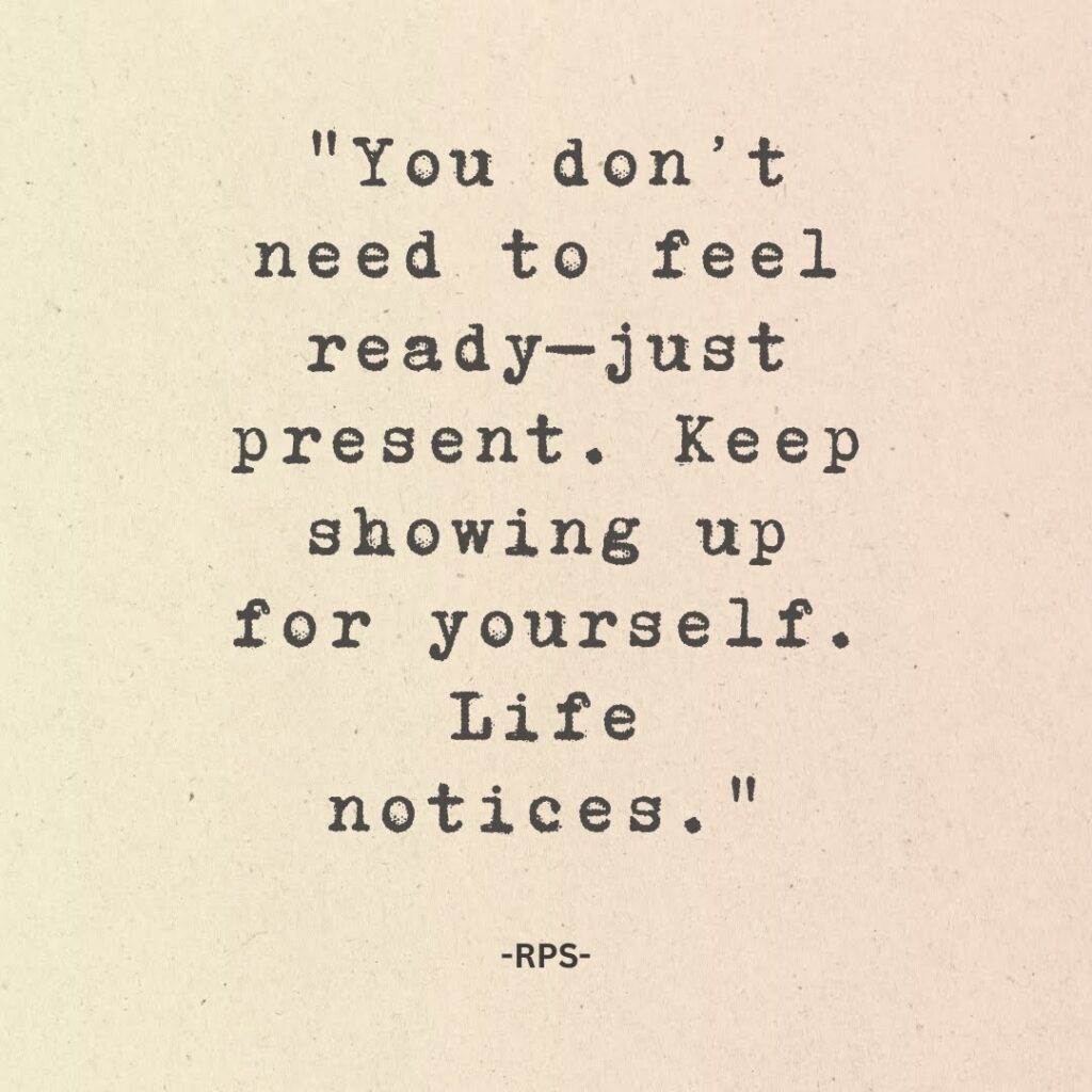 Readiness is overrated. Presence is everything. When you show up as you are—uncertain, imperfect, but willing—you create momentum. Life doesn’t wait for perfection; it meets you in motion.