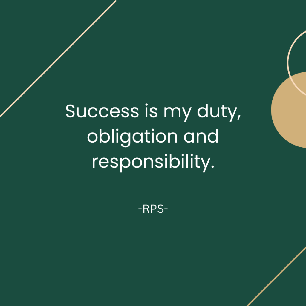 Your success is your duty, obligation and responsibility to you and your family!